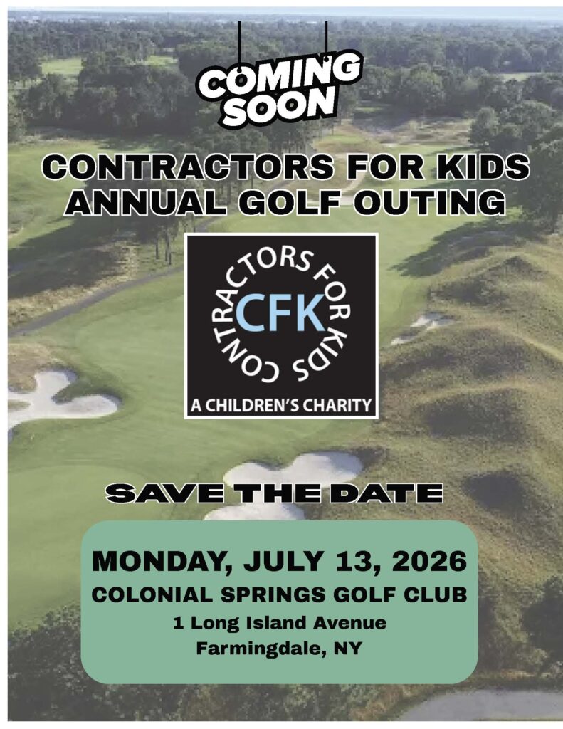 CONTRACTORS FOR KIDS ANNUAL GOLF OUTING Daniel Bipes SAVE THE DATE! CONTRACTORS FOR KIDS ANNUAL GOLF OUTING Read More »